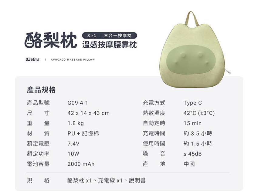 【3ZeBra】酪梨枕|溫感按摩腰靠枕