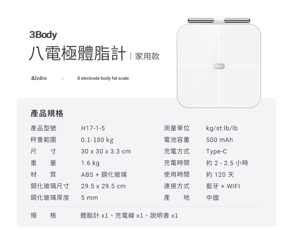 【3ZeBra】3Body 八電極體脂計(家用款)