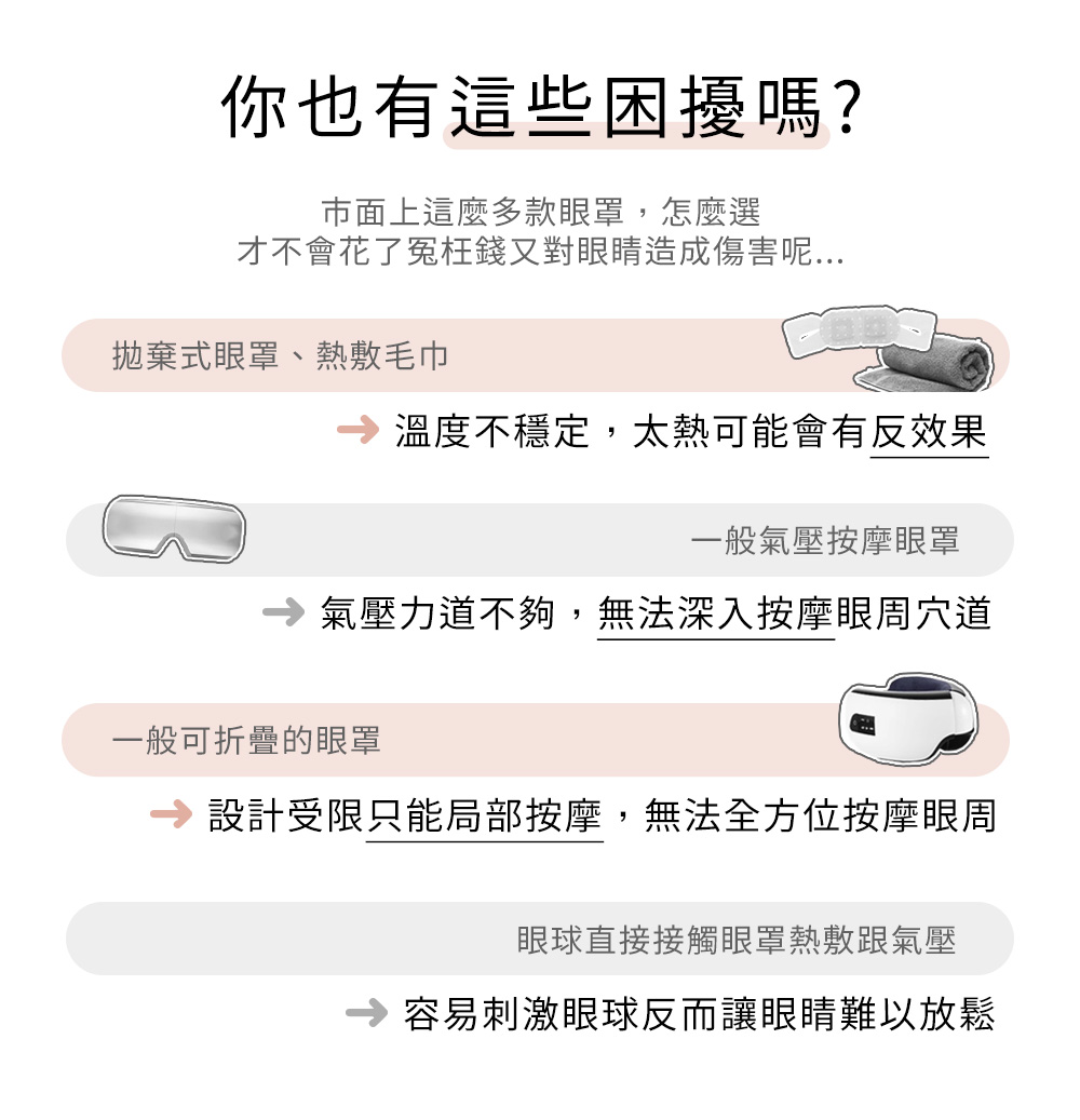 • ③ 雙層按壓包覆,3D眼窩設計